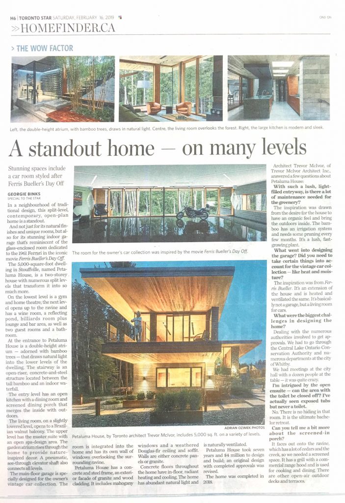We are happy to announce that Petaluma House was featured in The Toronto Star this past weekend. You could read the full article including an interview with Trevor McIvor here.