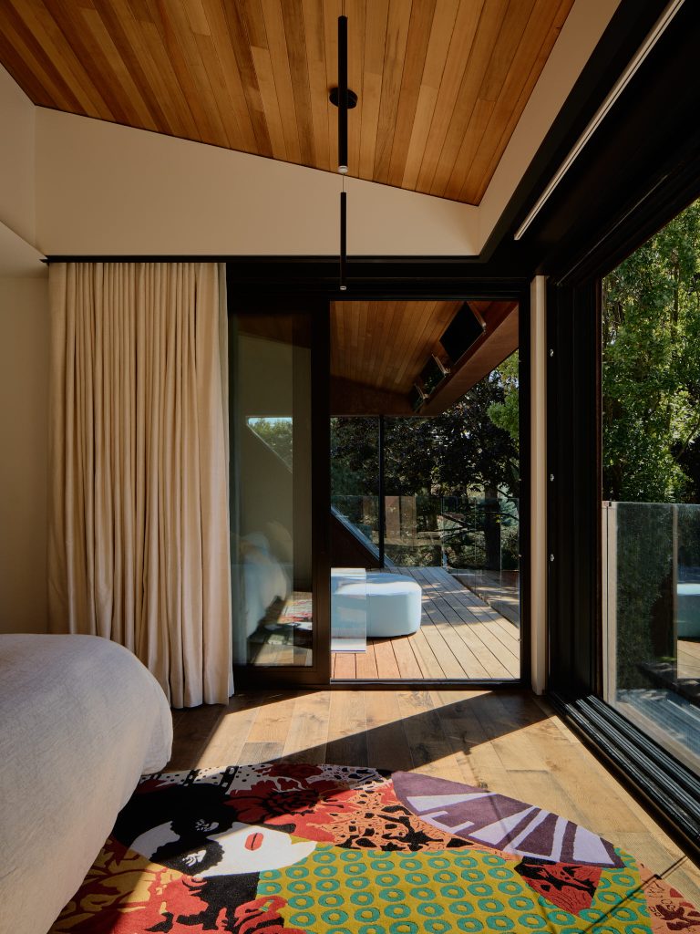 Outdoor spaces are thoughtfully integrated into the design, extending living areas and providing moments for retreat within the urban setting. The layered garden views enhance the home’s connection to nature while maintaining a sense of enclosure and intimacy.