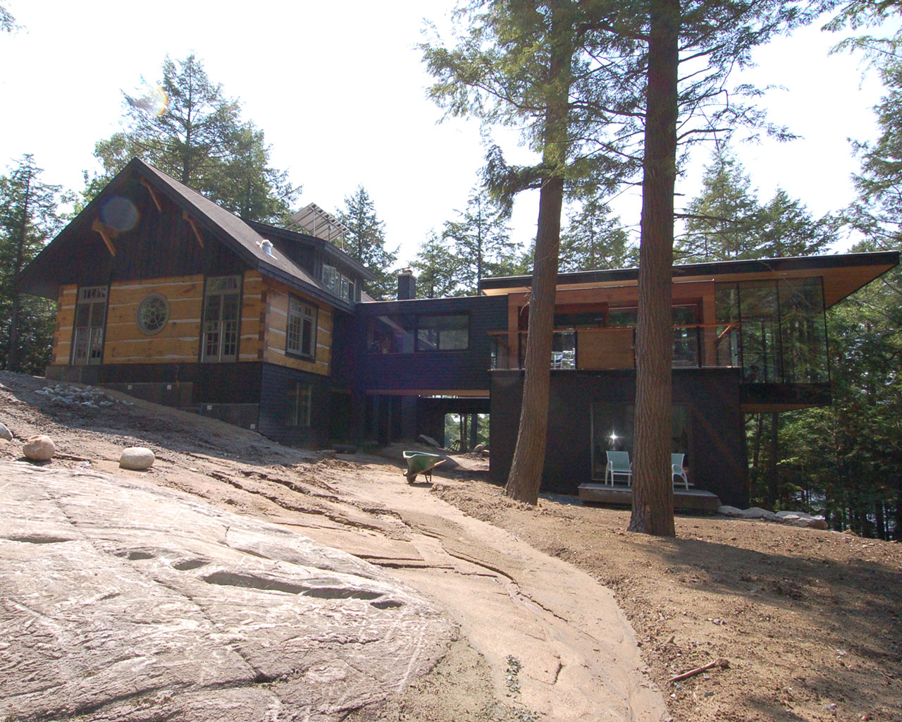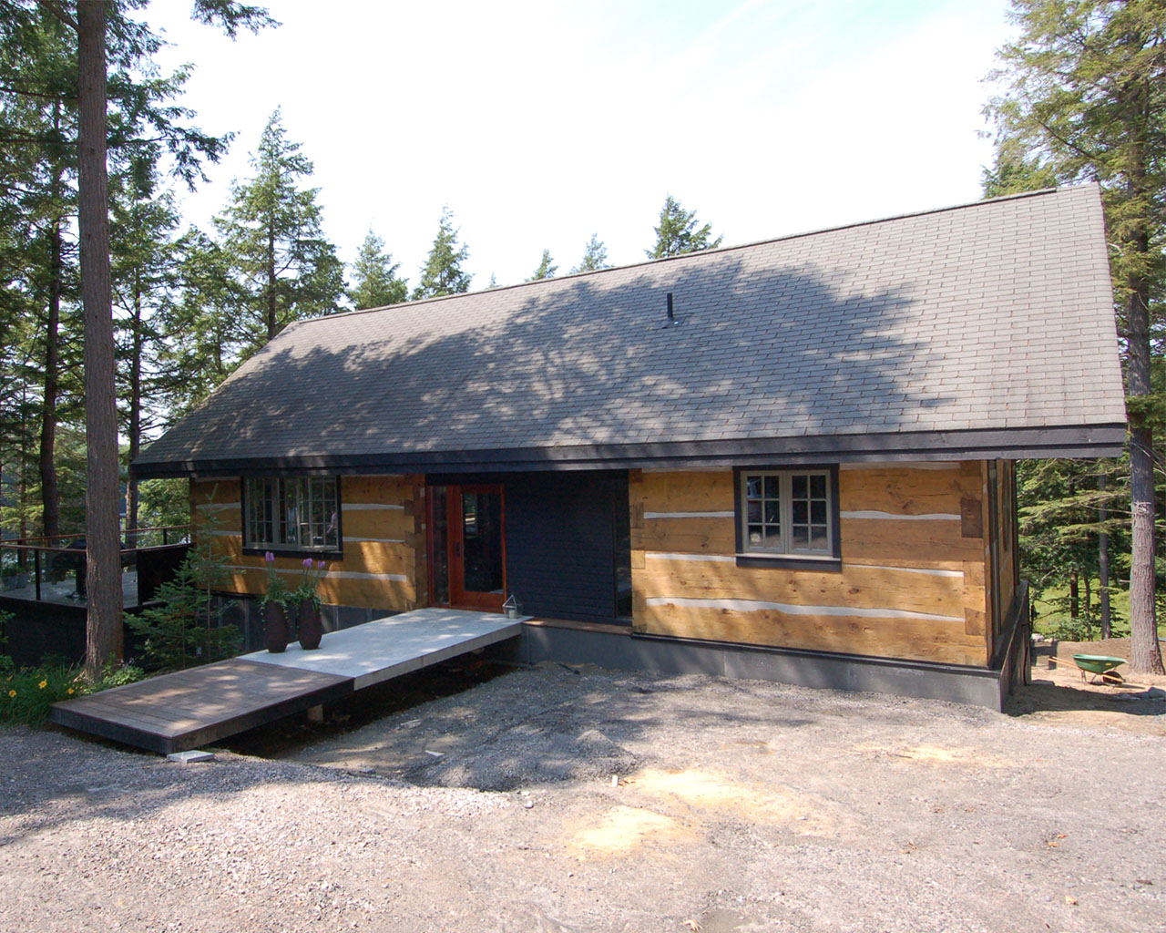 This project is a perfect execution of how old can meet new. The clients wanted to expand the program of their existing cottage. The existing building, a traditional log cabin with a pitched roof, originally housed all the necessary functions.